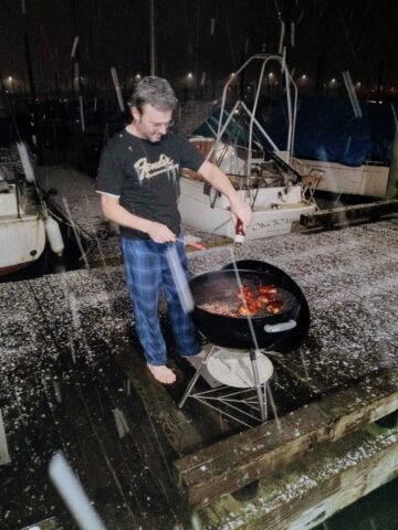 photo: It’s dark and the wind sounds like a freight train, with each raggedy rising gale the 2 and 3-inch dock lines groan, squeal, and complain against the heaving load like a gaggle of monsters in a hole. Everything is crusted over with about 31 inches of snow and topped with a rock solid coating of ice just for good measure, the temp has wobbled between -5°F and 10°F for a week, but the coming heat wave should get us into bbq grilling weather at 18°F.
